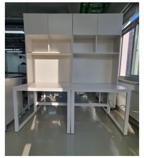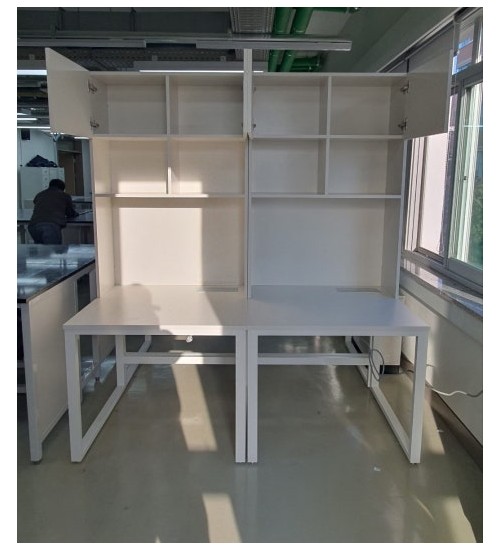 • 맞춤제작  좌우 칸막이 상부 수납형 실험실 시스템 책상