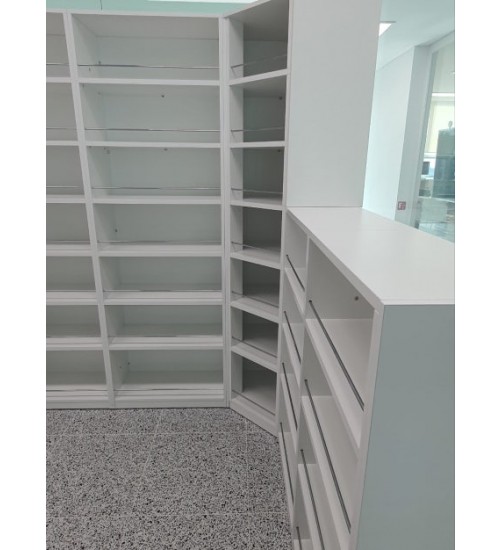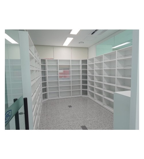 • 맞춤제작 붙박이 5각 코너 오픈 약품 보관장 진열장